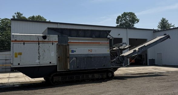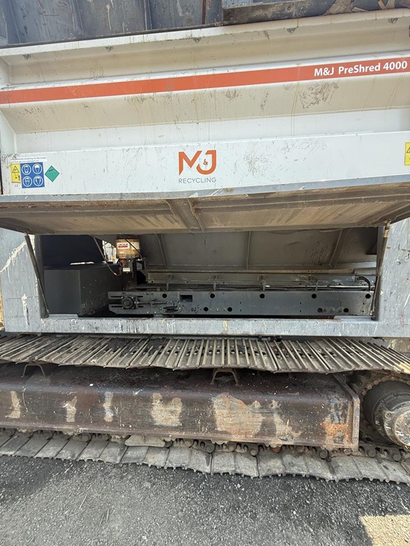 Hour meter replaced - 4,600 total hours. Feed table & shafts replaced in 2022. This M&J Recycling PreShred 4000M is a powerful and versatile crawler grinder machine designed for processing various materials.