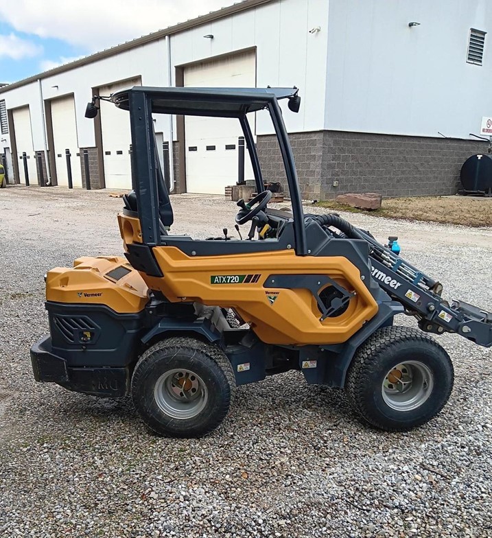 2022 Vermeer ATX720 wheel loader features a 25hp Kohler diesel engine, ROPS, and a float boom.